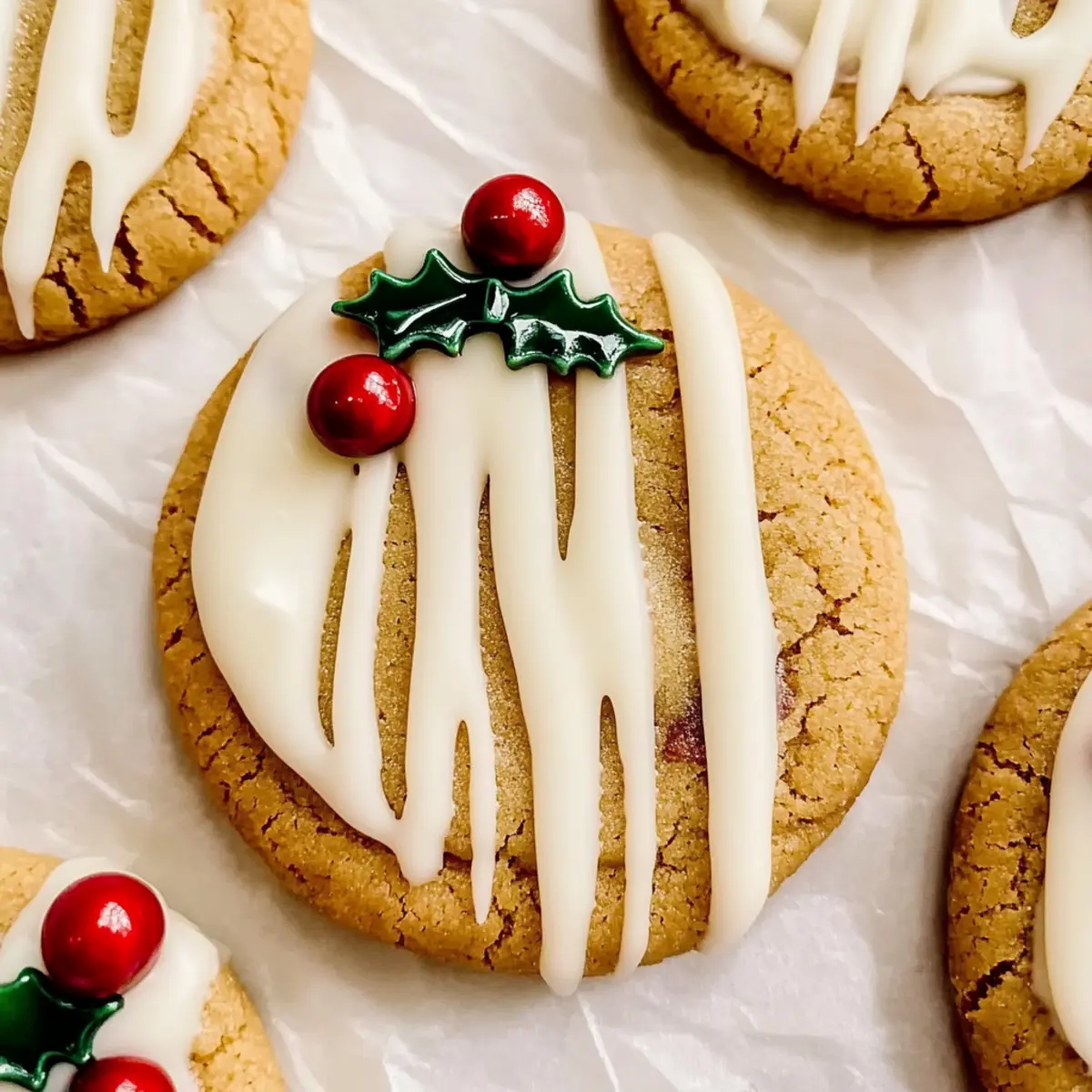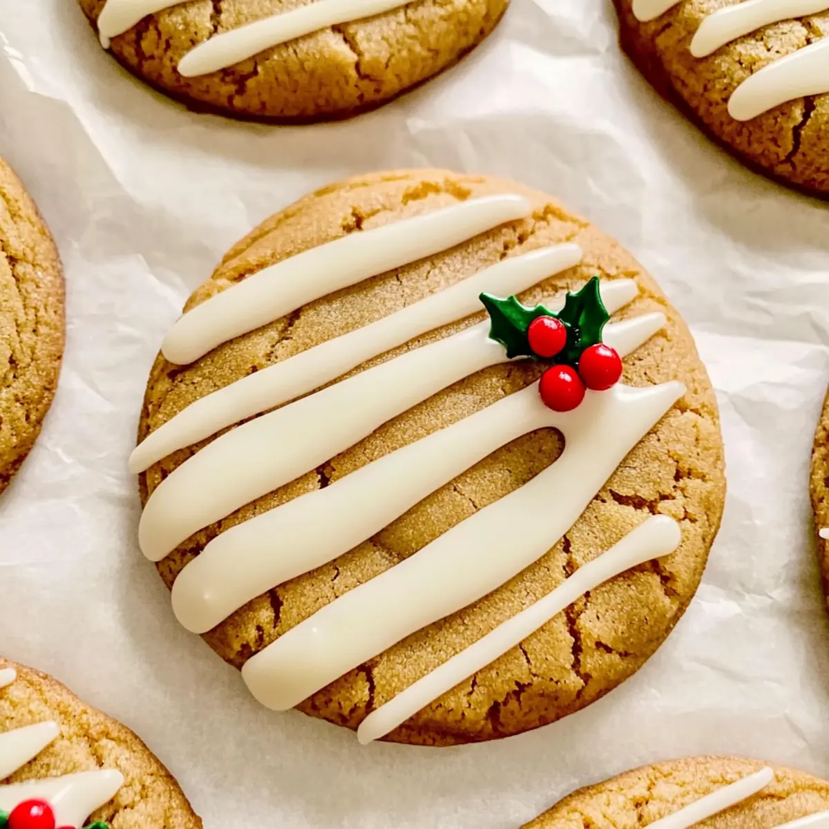 If desired, drizzle any remaining melted white chocolate over the cookies and sprinkle with holly berry sprinkles before the chocolate sets. This step adds a lovely festive touch for your Chewy Maple Cinnamon Cookies, making them appealing for holiday gatherings and adding a pop of color.