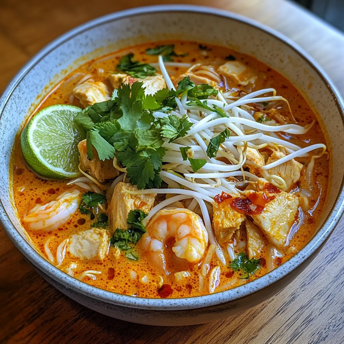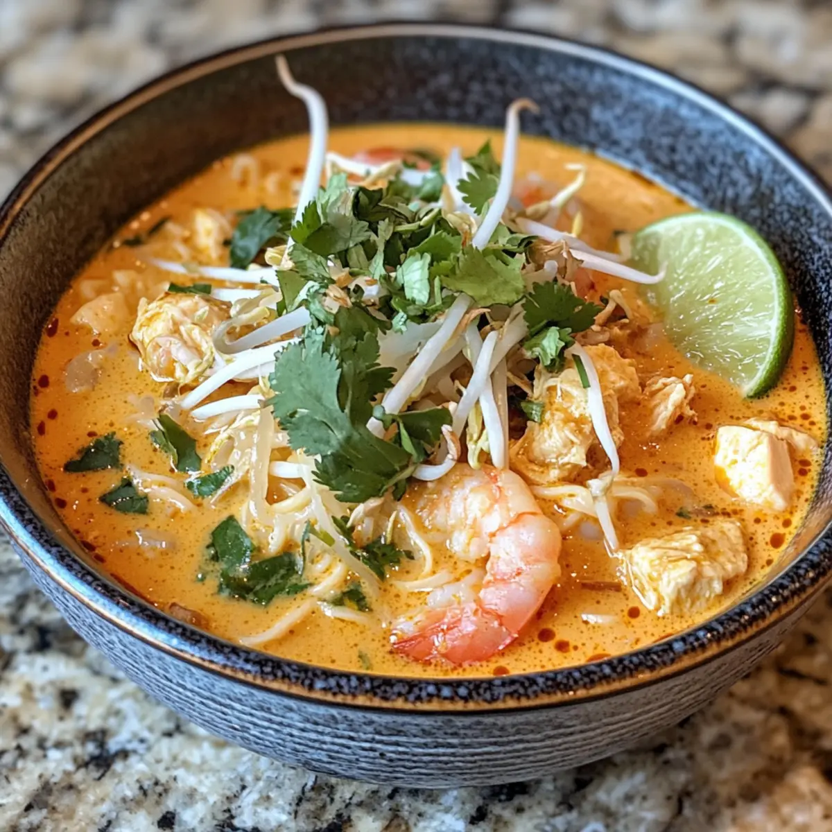 Rich, Creamy Broth: This soup features a luxurious base of coconut milk infused with zesty spices, providing an indulgent yet comforting experience.