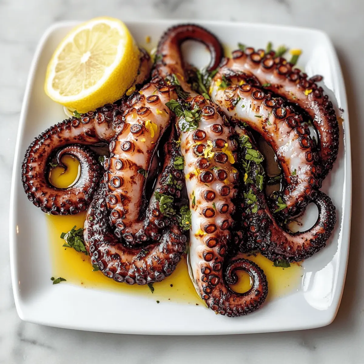 After grilling, transfer the octopus to a serving platter and let it rest for a few minutes. This resting period will allow the juices to redistribute, ensuring each bite is juicy and flavorful. Once rested, slice the octopus into pieces and serve with fresh lemon wedges for an extra zesty kick, making your homemade grilled octopus a delightful centerpiece for any meal.