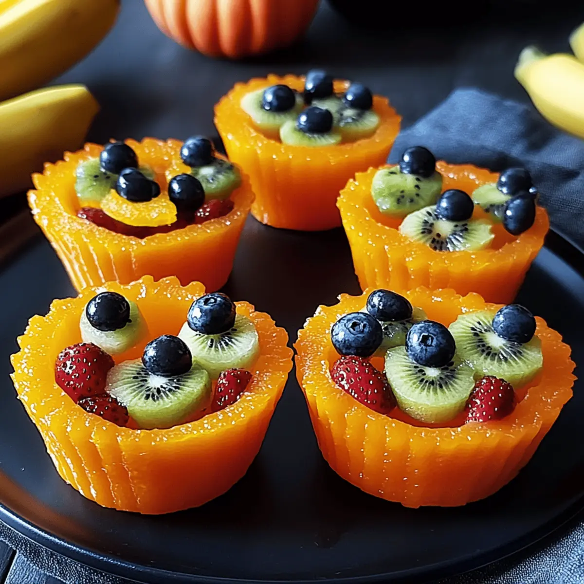 - Fill Cups: Spoon the fruit mixture into each pumpkin-shaped cup generously.