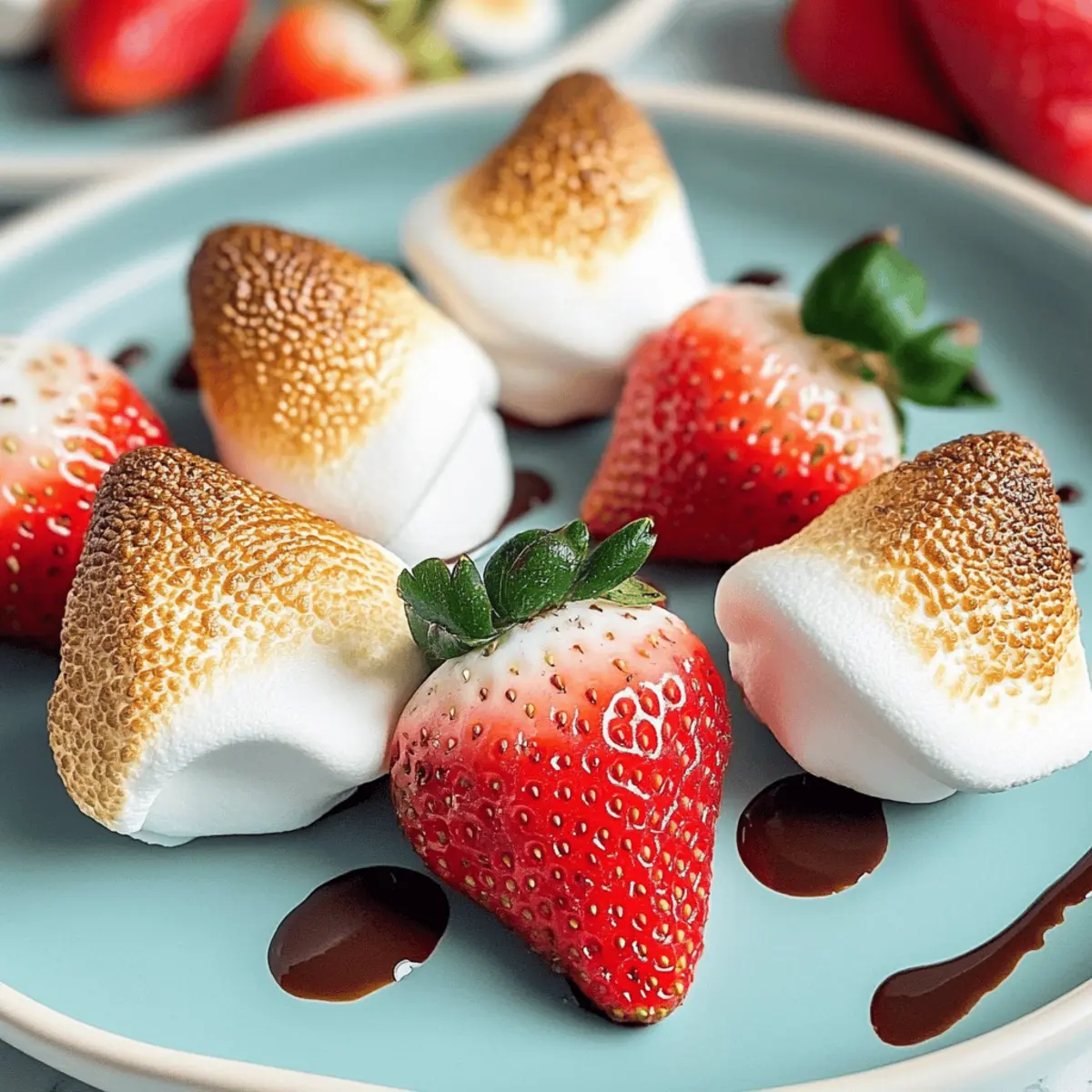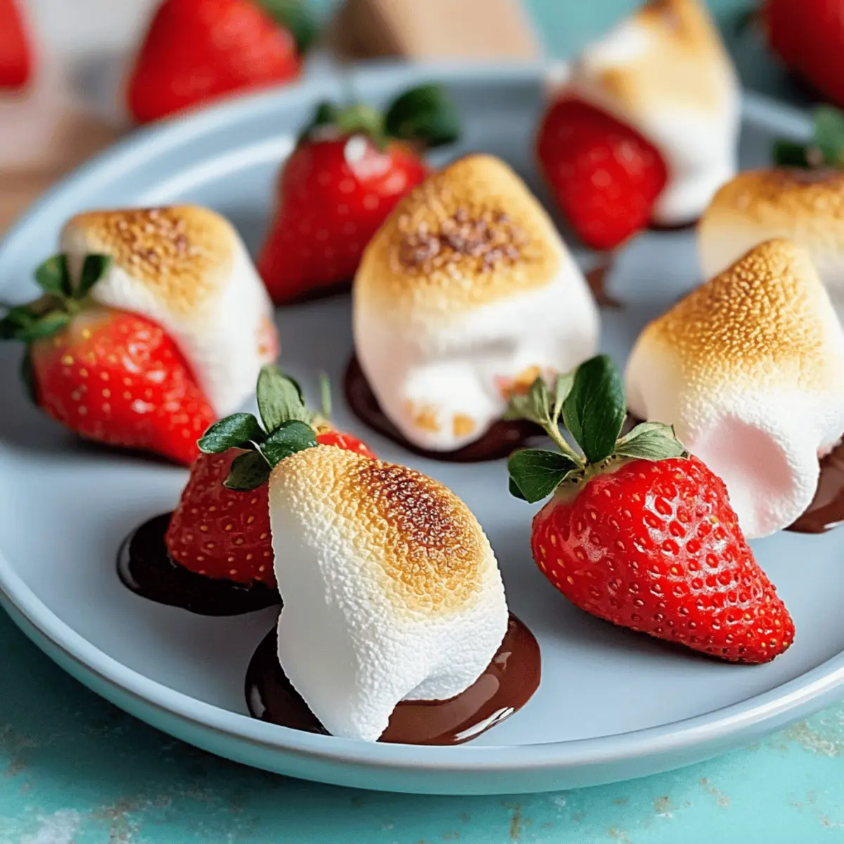 Toasted marshmallow strawberries are a delightful dessert that combines fresh strawberries with sweet marshmallow fluff for a fun and nostalgic treat.