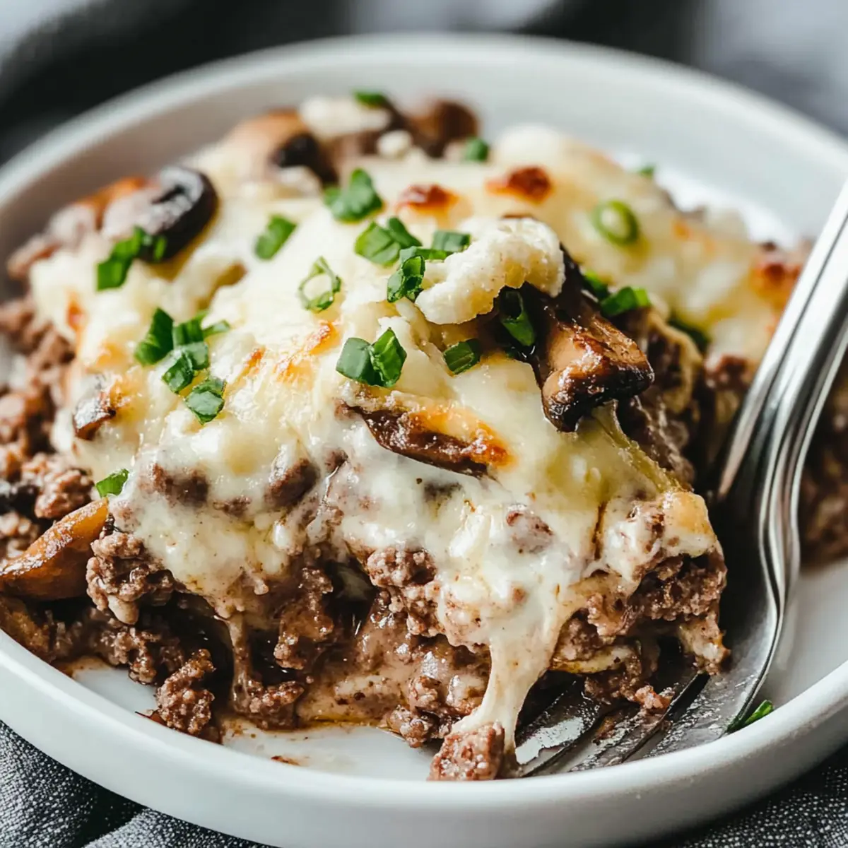Don’t Skip the Cool Down: Let the casserole sit for 5 minutes before cutting. This allows it to set and makes serving easier, enhancing the overall experience of the Mushroom Swiss Cheeseburger Casserole.