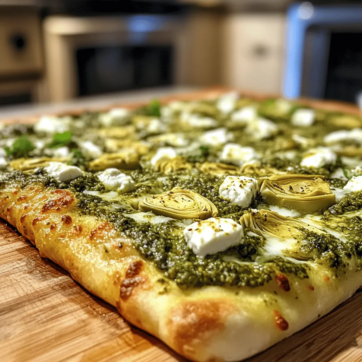 Crispier Crust: Pre-bake the pizza dough for 5 minutes before adding toppings. This extra step helps achieve a wonderfully crispy base for your Pesto Feta Artichoke Pizza.
