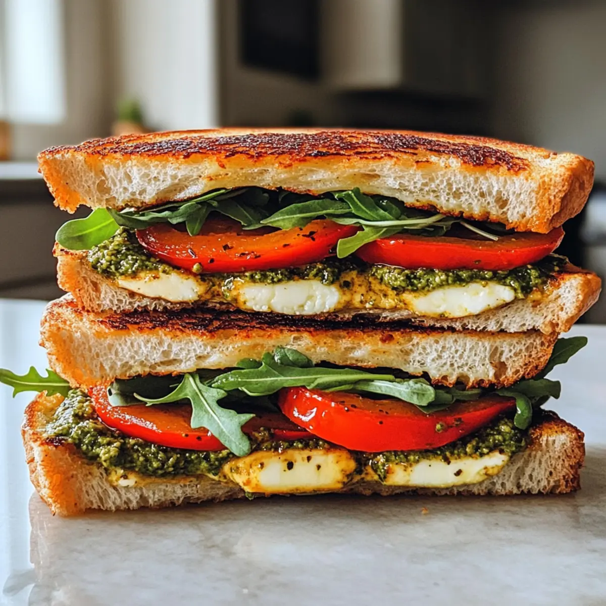 These Pesto Hummus Sandwiches are perfect for meal prep enthusiasts! You can make the pesto hummus ahead of time and store it in an airtight container in the fridge for up to 3 days; this not only saves time but ensures a quick, flavorful base. The roasted red peppers and halloumi can also be prepped a day in advance and refrigerated. To maintain quality, keep the components separate and assemble the sandwich just before serving. When you’re ready to enjoy your sandwich, simply toast the bread and heat the halloumi in a skillet for a few minutes until warm and crispy, and you’ll have a delicious meal ready in no time!