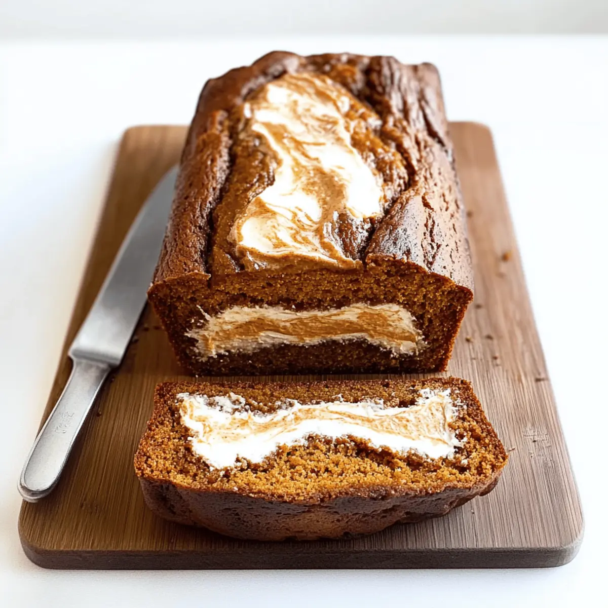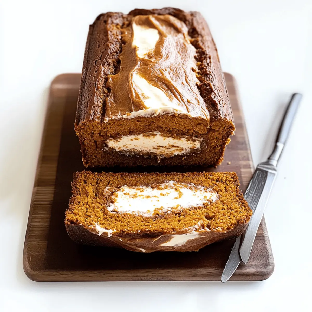 Decadent creaminess: The luscious cream cheese swirl transforms a classic pumpkin bread into an indulgent treat that’s hard to resist.