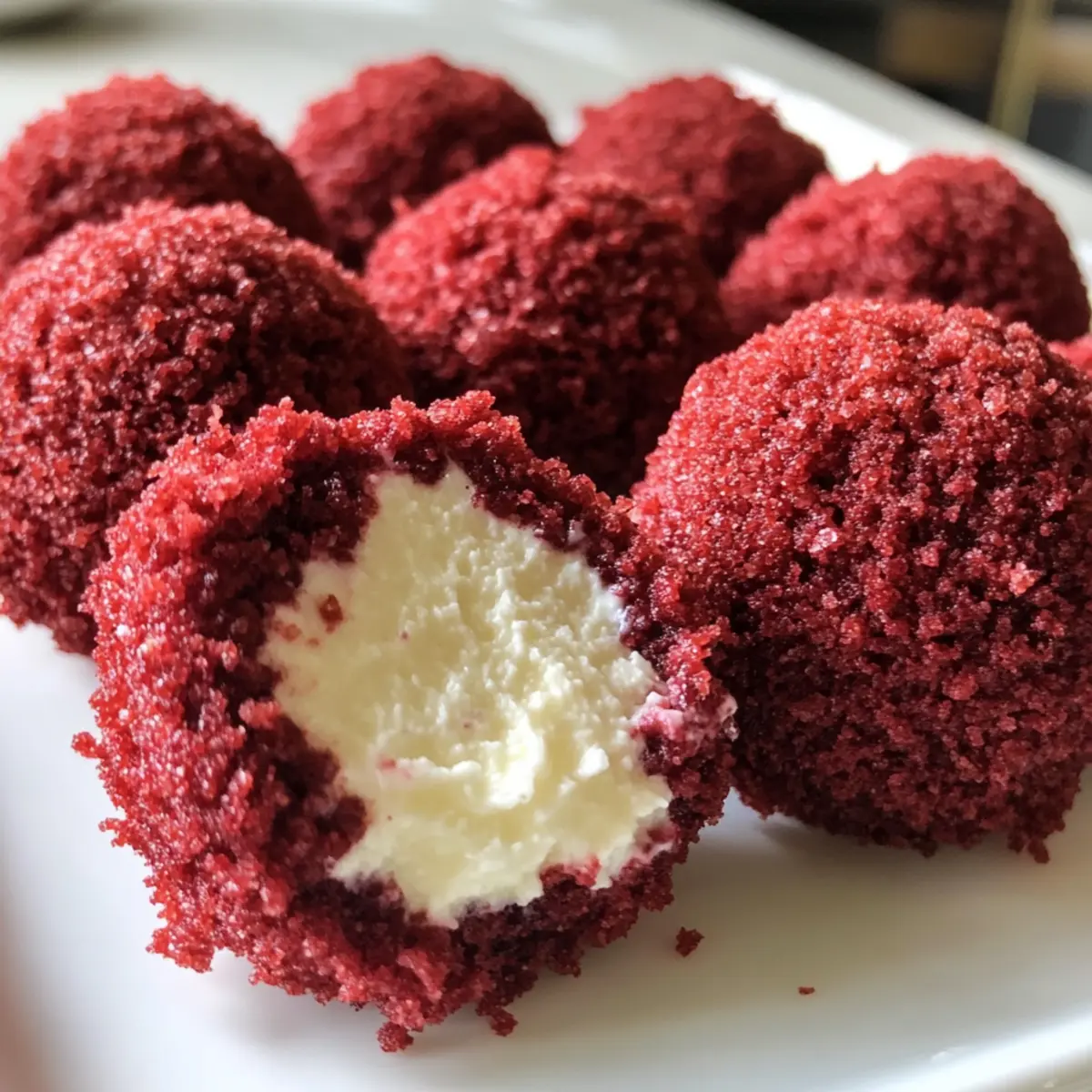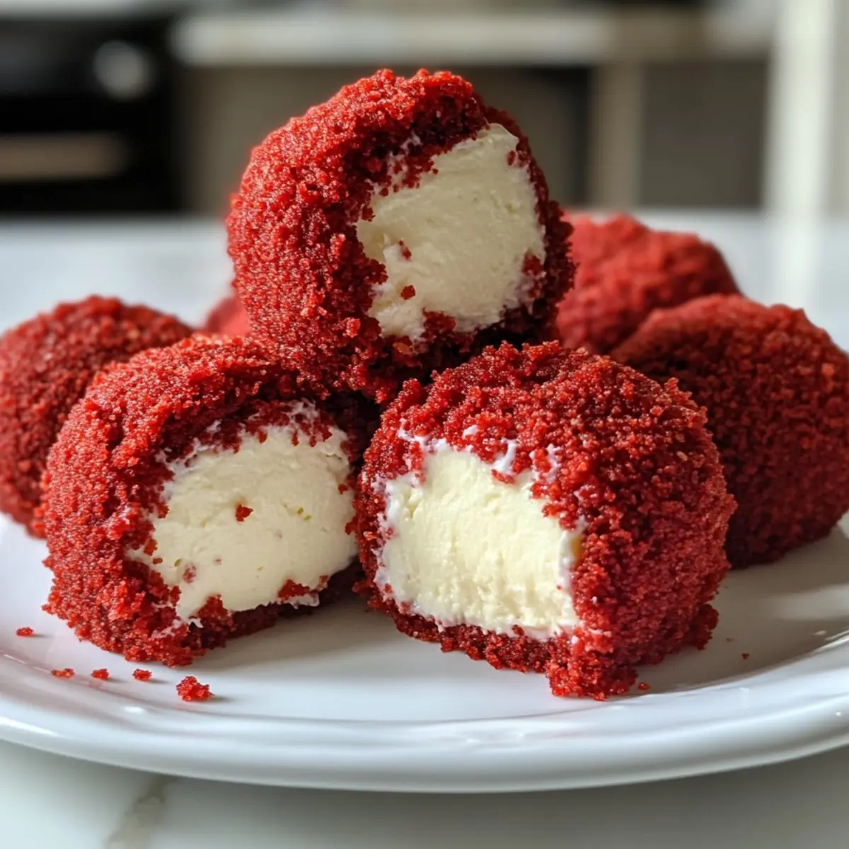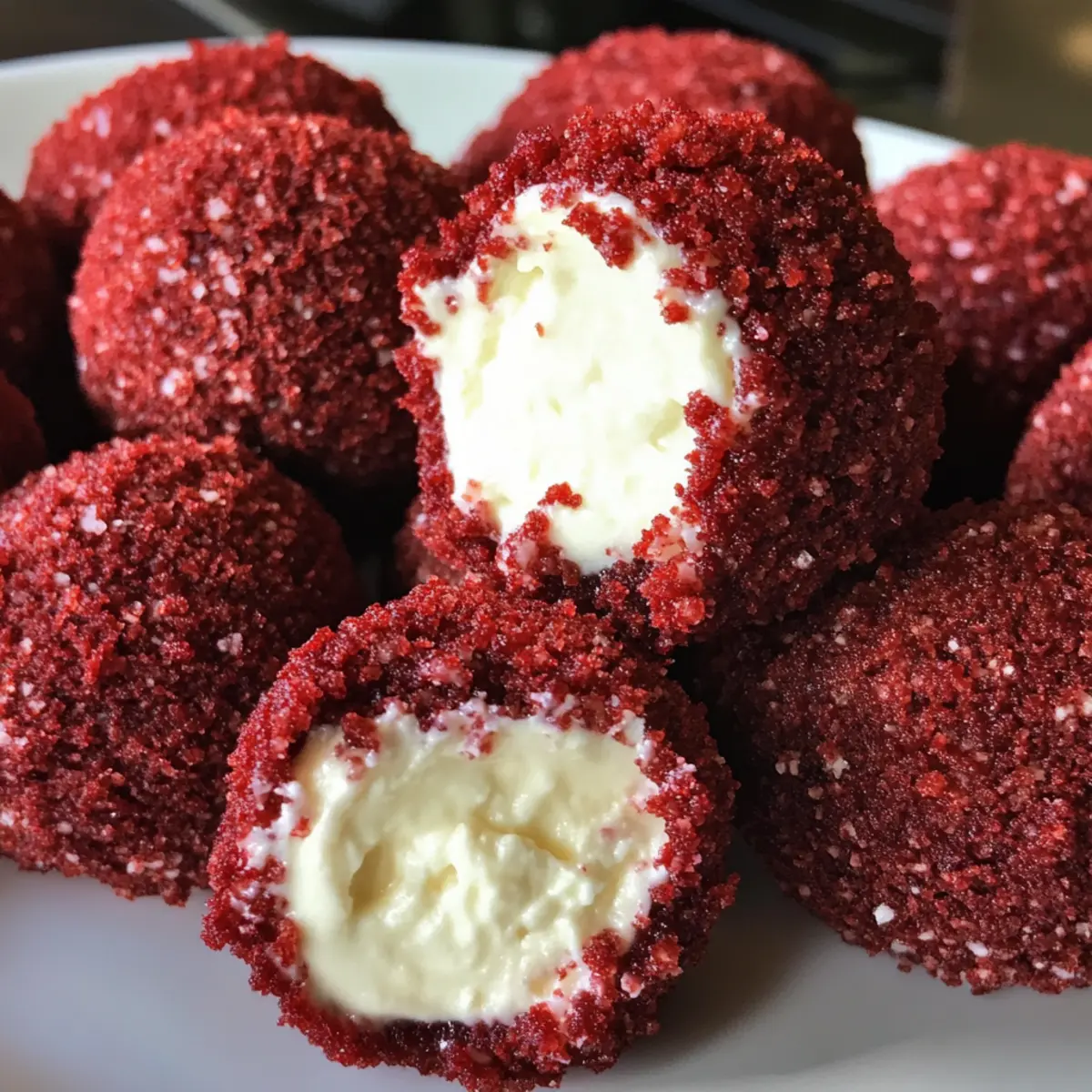 - Crushed Red Velvet Cake Crumbs – Provides a playful exterior that ties the bites together; simply crumble your baked red velvet cake for this.