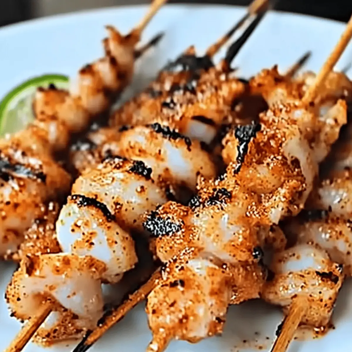 - Place the skewers on the grill, cooking for about 2–3 minutes on each side, until opaque and slightly charred.