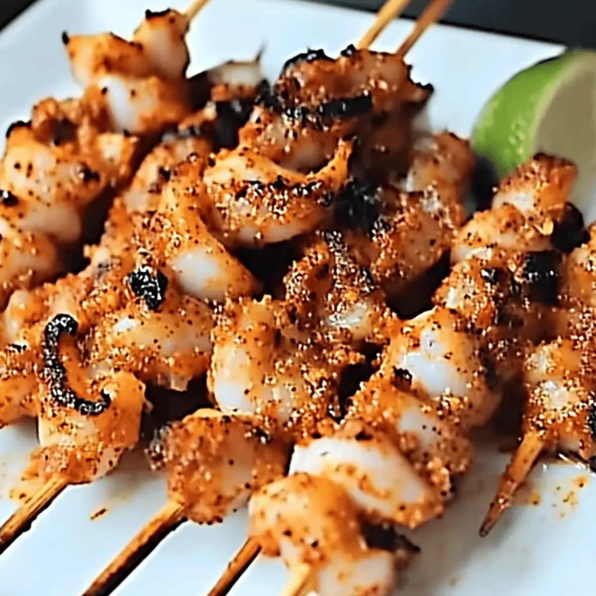 - Remove the skewers from the grill and slide the calamari off. Serve hot.