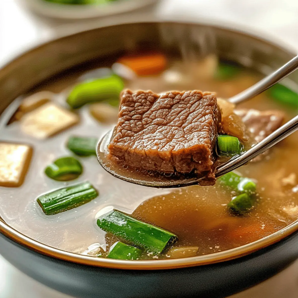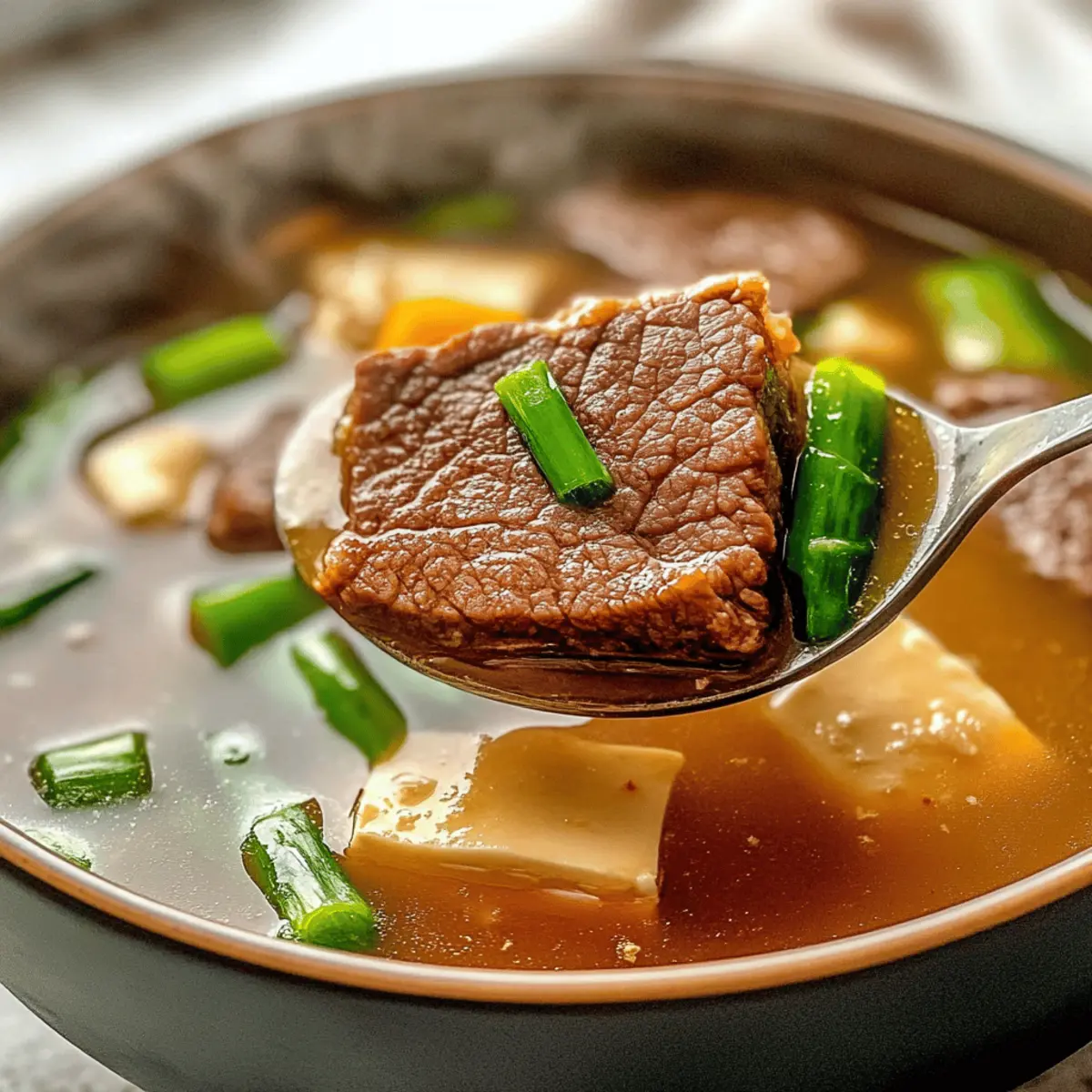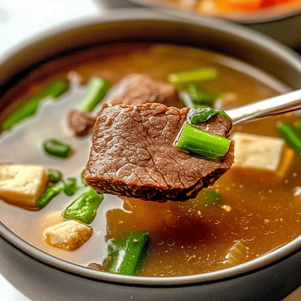 When ready to serve, ladle your hearty soup into bowls and garnish with sliced green onions and a sprinkle of black pepper for added zest. This Tasty Korean Winter Soup pairs wonderfully with a bowl of steamed rice, making for a comforting meal that warms both body and spirit on chilly nights.