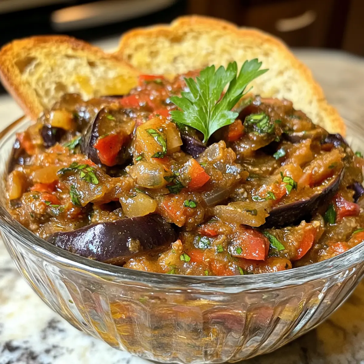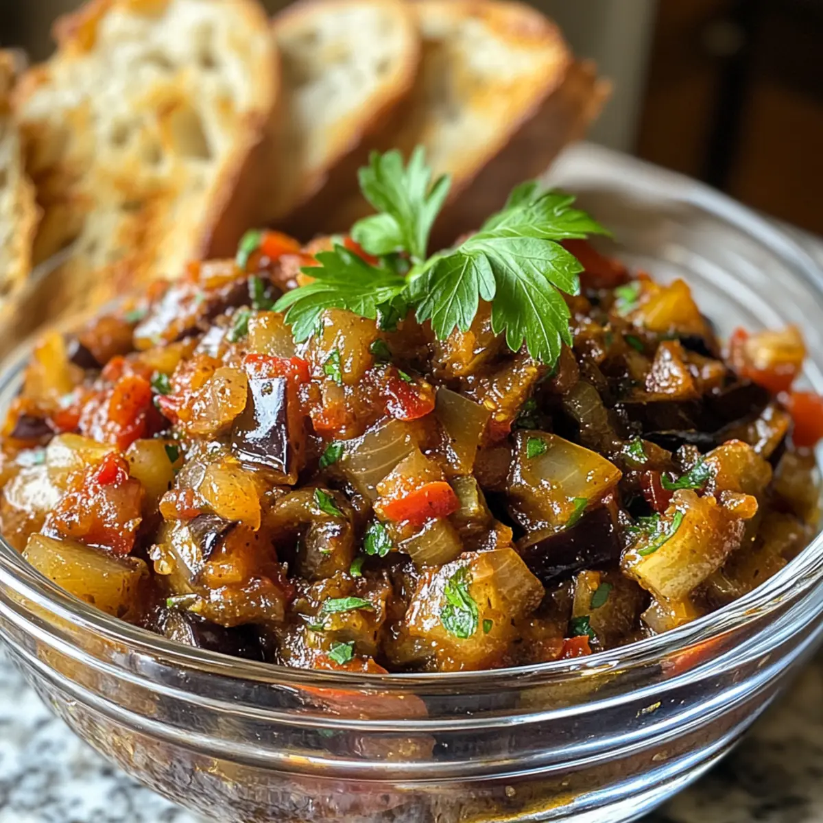 Toasted Baguette Slices: The crunch of lightly toasted baguette adds a satisfying contrast to the creamy zacusca, making it an irresistible starter.